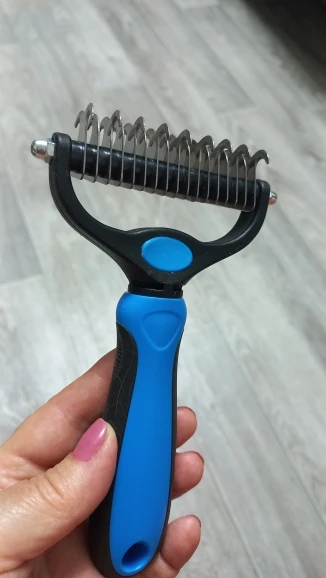 Very good comb. Combs wool perfectly. The dogs really like it. Does not injure the skin. And convenient to use. I recommend it.